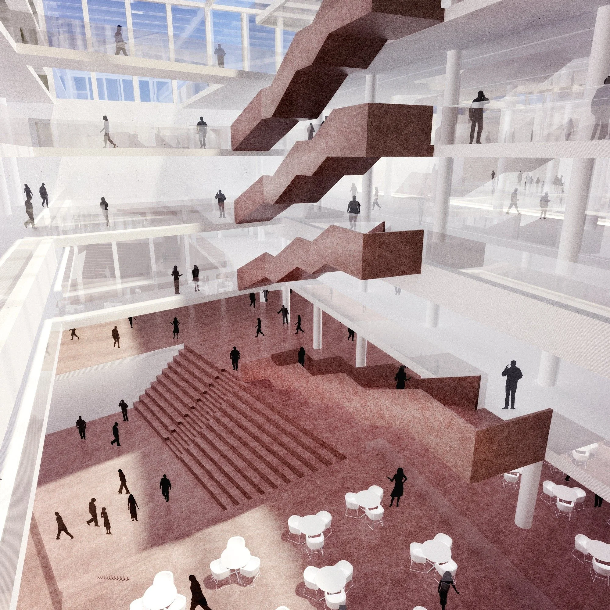 The building design emphasized collaboration and exploration, encouraging students to move freely throughout the building and engage with peers from different disciplines. We envisioned certain areas of the college as vibrant, open spaces that could serve as focal points for the entire college population. These spaces would host events, conferences, and gatherings, contributing to the vitality of the campus.