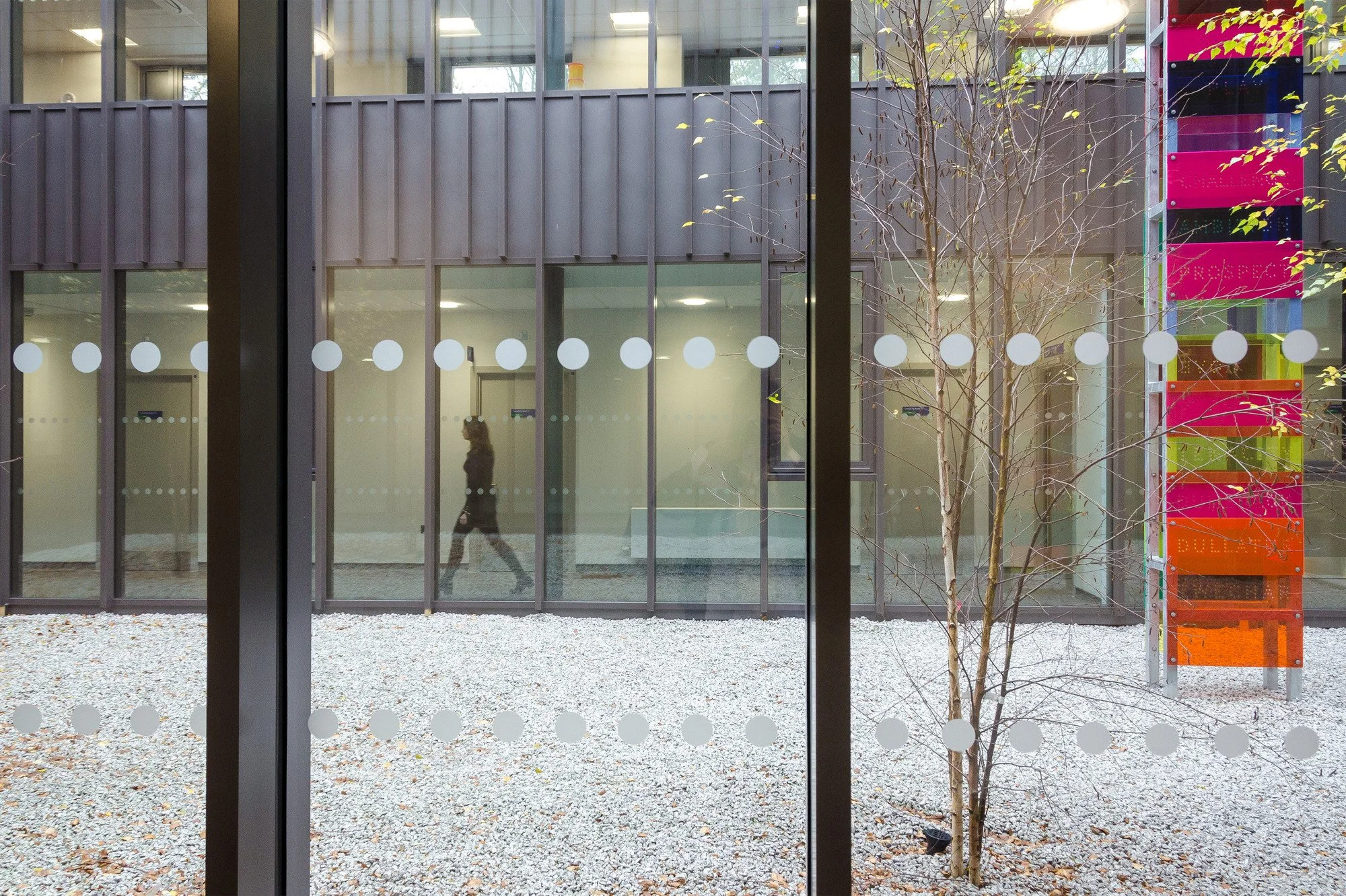 The patient journey is simple, clear and precise: you enter, arrive at the reception in central space and are directed to the relevant, adjacent waiting area. You orientate yourself towards the courtyards and towards the department you are visiting. The diagram, orientation and wayfinding are logical and easily understood. There are views to the outside at the ends of all corridors. External factors have influenced the design, massing and placement on the site and how the hard and soft landscaping is designed. The design of the building reacts to the pedestrian routes, the traffic routes and the topography of the site.