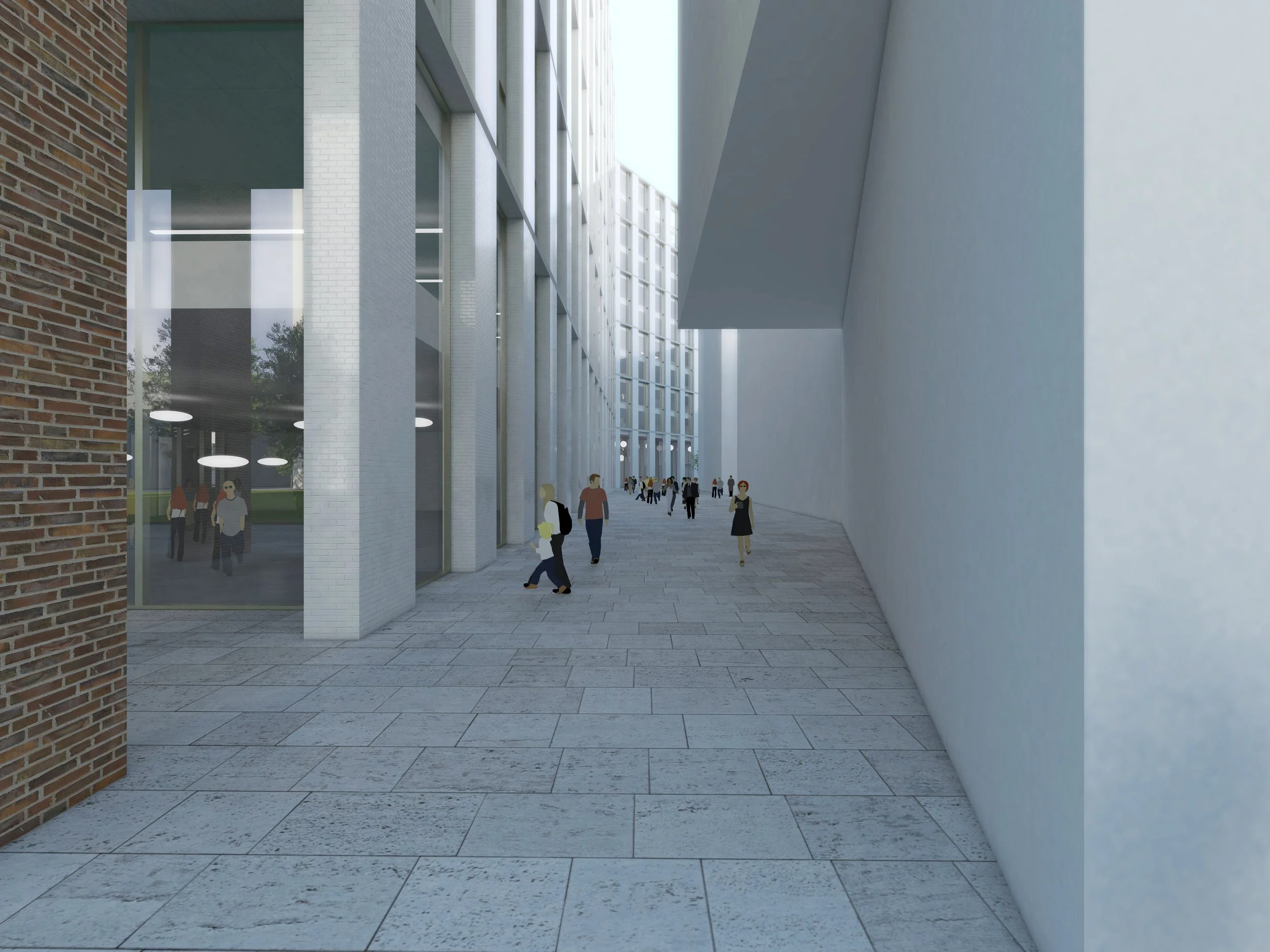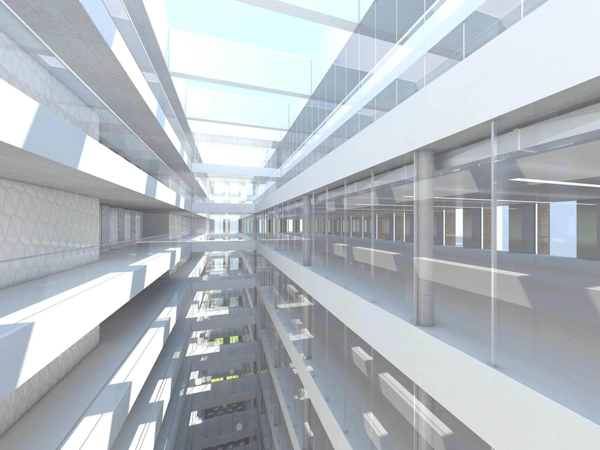 We began this exploration through the arcades and atria that perforate the building section allowing movement through the buildings to be seen. The great opportunity is the opening up the plan and section in a way that not only affords visual connections but also creates moments within the commercial floor plates where staff can meet and exchange ideas. These opportunities move from the scale of architectural interventions such as the arcade through to the opportunities of innovative design in the individual workspace.
