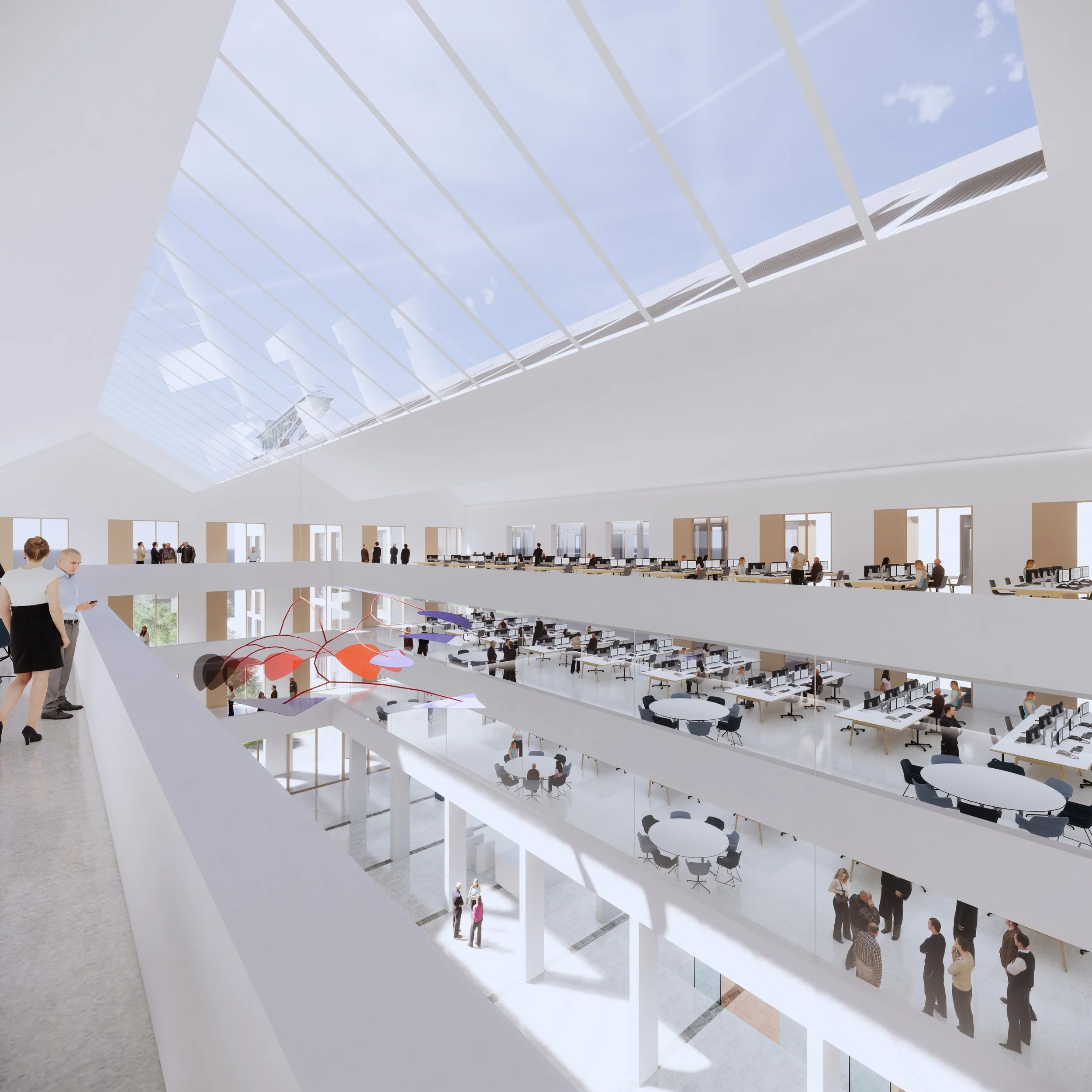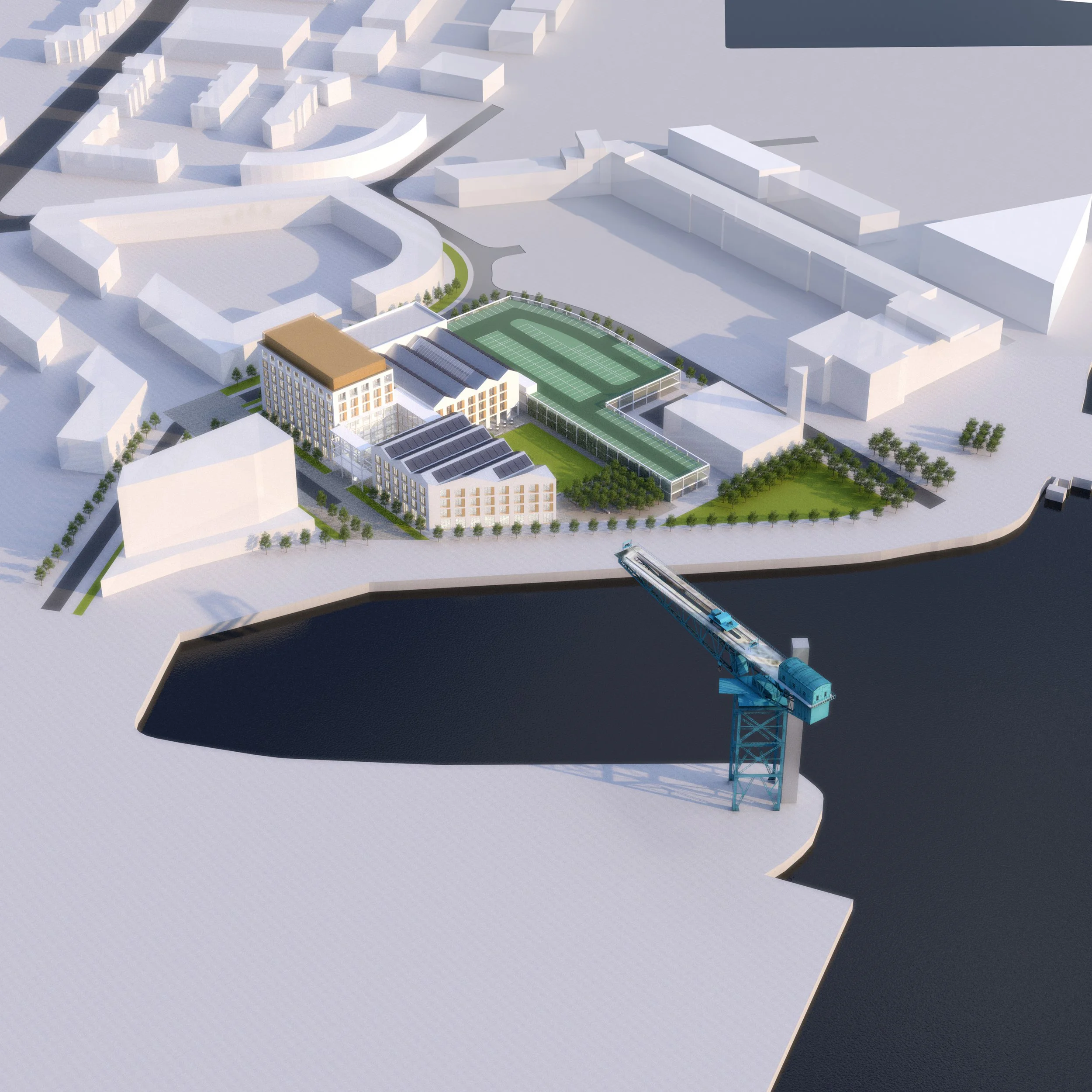 Architecturally, the design respects the site’s industrial legacy while embracing contemporary, sustainable building practices. The façades feature a generous amount of glazing to maximise natural light, balanced by carefully considered shading strategies to mitigate solar gain. This thoughtful approach aims to create a sophisticated civic architecture that is responsive to the local context and enhances the overall experience for its users.